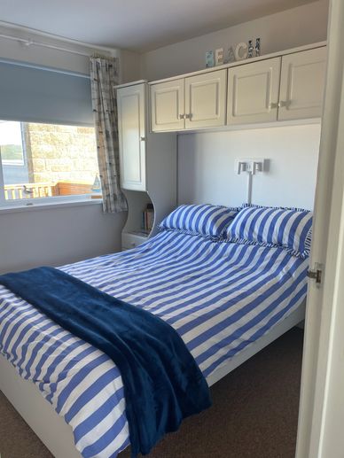 Main bedroom contains 4ft 6 double bed, cupboard space and modern reading lights above bed. Hairdryer. All linen provided and beds made up on arrival.